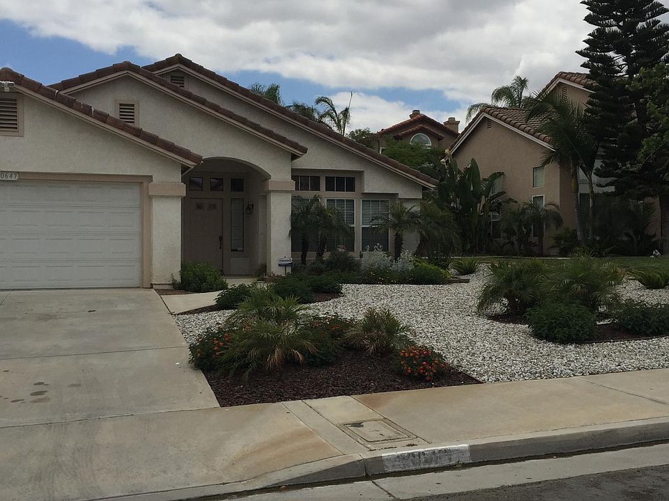 Highly upgraded single level home - amazing floor plan and attention to detail. This home features a very open floor plan with a formal entry and living room leading to a very large kitchen which opens to the family room. The kitchen has custom cabinets with plenty of storage. Both the living and family rooms have vaulted ceilings and a lot of windows for an abundance of natural light. The master suite features vaulted ceilings, coffered entry to the bathroom complete with shower and tub. There are two sliding glass doors leading to the backyard which features a large covered patio and firepit. The garage is fully finished and custom painted. The entire house has custom paint and upgraded interior doors.