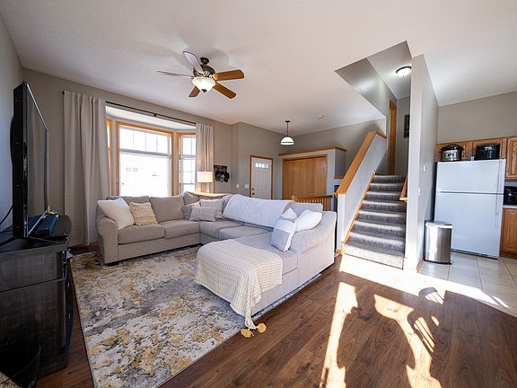 Gas fireplaceUpdated flooringBar top seatingEnd unit townhomeDedicated storage spaceOpen concept main levelMassive side yard