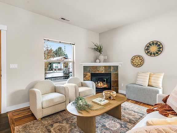 Adorable turn-key single level 2 bed + office (could be converted to 3ʳᵈ bed) home, nestled in an established neighborhood just minutes to the Old Mill, blocks away from schools & Bend's latest attraction Alpenglow Park! This inviting floorplan boasts a gorgeous remodeled kitchen featuring updated cabinetry w/glass doors, quartz counters w/large island breakfast bar, subway backsplash, & ss appliances w/ 5 burner range. A dining room addition is great for entertaining & adds an open feel to the home. Beautiful hardwood floors in the dining room extend through great room into the office that is well appointed for working from home. Updated in 2018 the primary bed & bath feature tile floors, tile shower, dual vanities, updated fixtures, additional cabinetry, & skylight. Step outside into a private landscaped backyard w/ paver patio. The large 2-car garage has ample room for storage & updated electrical for running shop tools. Priced under $520K this is a must-see!