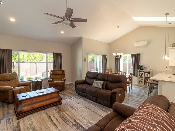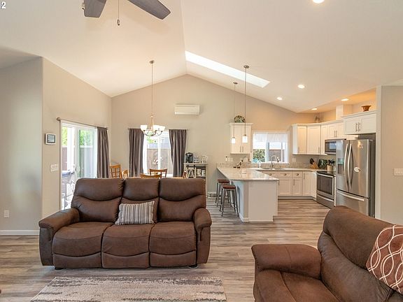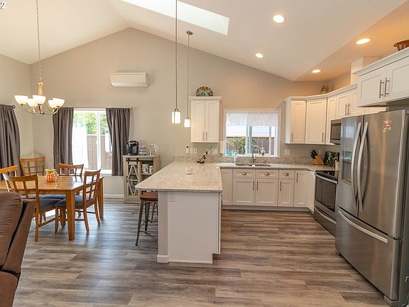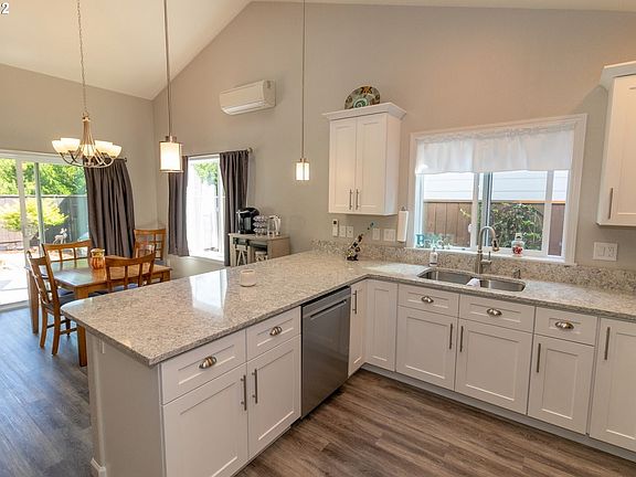 Pride of ownership shows in this well maintained and loved 4 bdrm/2 bath home. Open concept w/quartz counters; stainless steel appliances, eat bar, skylight w/slider out to covered patio. Luxury vinyl planking floors throughout. Primary bdrm w/clawfoot tub, quartz counters; slider to covered patio; fully fenced beautifully landscaped back yard. Finished & insulated 12x14 shed, ceiling fan and electric plug plug ins for inside & outside lighting. Extended concrete driveway to park boat/trailer.