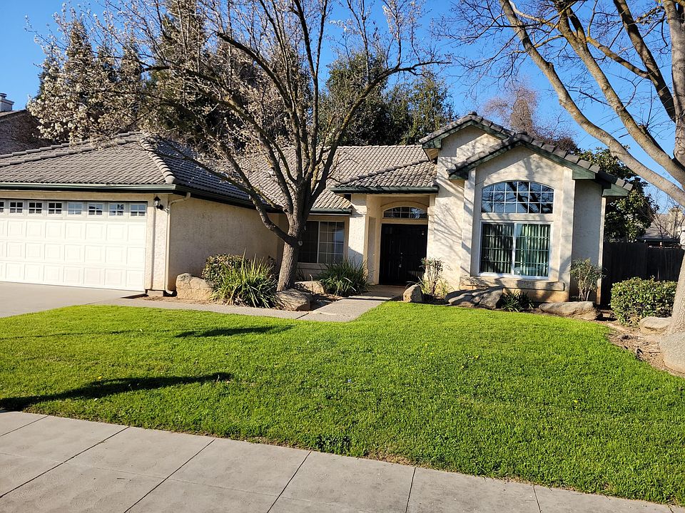Clovis home in quiet neighborhood. Living and family rooms with large kitchen. Large, shady backyard. New carpet and paint. Yard service included