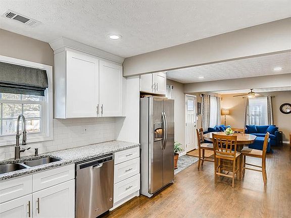 - Kitchen Features: Cabinets White, Pantry, Eat-in Kitchen, Stone Counters, View to Family Room