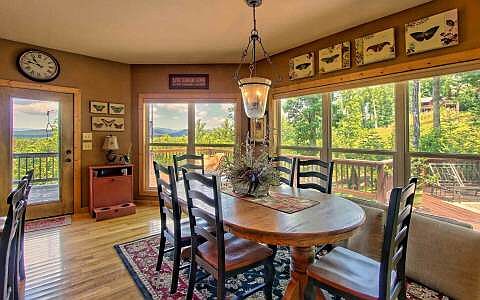 Beautiful Quality like new home with Phenomenal views of the NC and GA Mountains. Nice open floor plan, Kitchen has custom cabinetry, lots of storage, LR w/ double wood burning FP, Master on the Main with Huge Walk in Tile shower, Double Vanities. A wall of windows to enjoy the AWESOME Views, outdoor Stacked Stone FP Perfect for grilling dinner and enjoying All of the Mountain Views. Rocking Chair front porch, huge crawl space, ( has been used for "Man Cave). Two separate Outdoor buildings used for storage or garage to store old cars. Mature Landscaping and you can see a labor of Love in this home. Don't miss out on the golden opportunity to live in the NG Mountains !!!