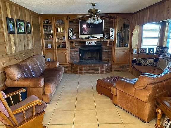 CBS home with cedar finished exterior and cedar throughout much of the interior give this home a nice country feel while being close to town. Fenced back yard with koi pond and two waterfalls provides a great place to relax in privacy. Cozy fireplace with pecky cypress mantle. Tile throughout. Metal roof. Screened back porch. Jacuzzi tub. New kitchen appliances. Make offer.