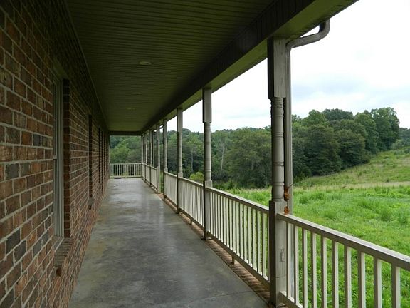 Countryside charm awaits you at this 5 bedroom, 4 bathroom brick Ranch style home with large basement on 150 acres of land! Long driveway meanders through the property's vast pasture land towards the entry way of the home's long front porch perfect for relaxing on rocking chairs with friends. Overlook the pond to the right side of the home as you talk, or take a trail ride on horses and four wheelers through the various paths peppered across the property. The diversity of the terrain appeals even to the most adventurous with its sloping hills, vast woods, and creek alongside the perimeter of the property. Try imagining large bales of hay, soaking in the sauna house down by the pond, and grabbing fishing poles from the tack house for a long evening fishing as others swim on the opposite side. Whether for work or play, this property is sure to have everything you need including a large barn with adjacent shed. Inside the home, the open floor plan accommodates the bustling of a full household with a sunroom beside the kitchen that overlooks the pond as you eat or entertain. The kitchen's breakfast bar provides additional space or even spread into the Great Room while still remaining connected to the rest of the household. Bedrooms in the back give those in your home an opportunity to get away from the action of daily life while the Master Bedroom, separated from the other bedrooms, provides you with the privacy you have been seeking in your home. For an additional sense of privacy when members of your household have company over, send them to the basement large enough for them to play a game of basketball. Outfitted with a bathroom and separate room, there is plenty of space for your household's guests to interact with one another and disperse as they wish. Whether they remain inside or walk out onto the patio through the basement French doors, everyone is sure to enjoy the accommodations of your home.