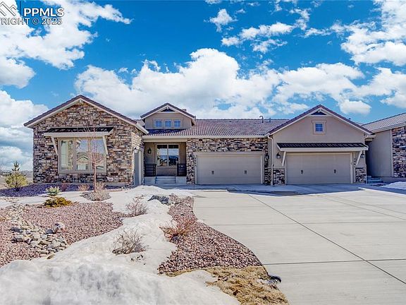 Amazing Home!! Maintenance Free Exterior, Main-Level Living, Paired Patio Home Located In A Cul De Sac With A 3-Car Garage & Garden-Level Basement In The Village of Cortona At Flying Horse!! This Stone & Stucco Exterior Home Provides A Covered Front Patio & Partially Covered Back Composite Deck Which Showcases Spectacular Mountain Views! The Gourmet Kitchen Features Staggered Cherry Slate Cabinetry With Crown Molding Which Extends Into The Dining Area For Extra Storage, A Spacious Quartz Island, Stainless Steel Appliances With A Gas Cooktop, A Single Basin Sink, Under The Cabinet Lighting & A Walk-In Pantry. A Barn Door Separates The Master Bedroom From The Custom Tiled Master Bathroom & Frameless Glass Shower Surround. Access To The Back Deck Is Found Through The Master Bedroom Or The 8' Slider From The Dining Area. Besides Spectacular Views From The Deck, A Gas Line Is Already Ran For Outdoor Cooking/Entertaining...Additional Features Inside Include: 2-Gas Fireplaces, French Doors Leading Into The Office, A Second Main Level En Suite Bedroom, Laundry Room With Sink & Mud Bench Near The Owner's Entry, Rod Iron Railing, Wet Bar In Basement With Plenty Of Additional Cabinets & Mini-Fridge, Clean Storage Under The Stairs, Brushed Nickel Hardware, Taller Basement Ceilings, A/C & A High Efficiency Furnace...Don't Miss This Amazing San Isabel Model Paired Patio Home, Built By Classic! Come Experience All That The Flying Horse Club Offers.