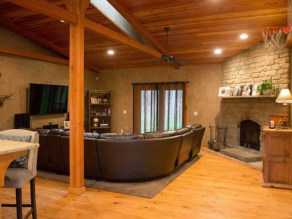 All brick, custom built home on 5 private and wooded acres with a gated entry. Well insulated 2x6 exterior walls, marvin windows, high efficiency HVAC with built in humidifier and a recirculating wood-burning stone fireplace. Beautiful wood cathedral ceiling with skylights in the living room. Granite countertops and stainless steel appliances. Great location, only 9 min from Sunshine & 65.