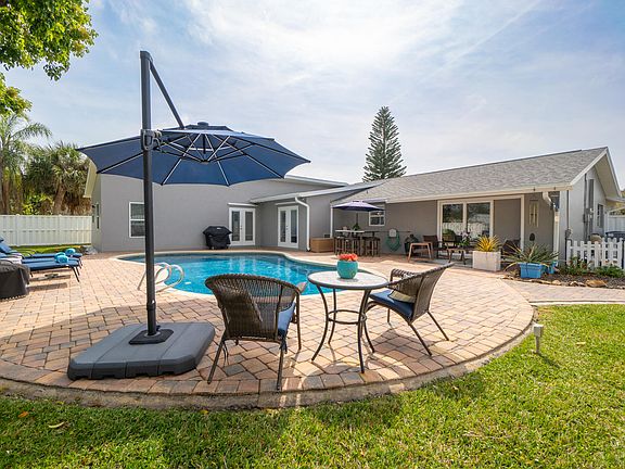 Spectacular Updated Pool Home Located In the Highly Desirable Melbourne Beach Community Of Riveria Estates! This 4 Bedroom, 3 FULL Bath, 2 Car Garage Split Floor Plan Home Is Picture Perfect! Directly Across From The Indian River & Offering Partial Views From Front Porch! Meticulously Maintained & Fully Updated! Beautiful Landscaping & Oversized Lot! New AC and Ductwork, Windows, Doors & Trim! New Hot Water Heater! New Italian Porcelain Floors! New Kitchen Appliances! Freshly Painted Inside and Out. Beautifully updated Upscale Baths! No Expense Spared- Solid Teak Vanity with Quartz Top. Marble Flooring! Double California Closets! Sparkling Pool with Pavers! Shed! Fruit Trees! Raised Vegetable Garden! Backyard Looks Like A Park! BEAUTIFUL! Community Riverfront Community Dock! The Perfect Location - Walk To Spessard Holland Golf Course, The Beach, Ryckman Park & Fishing Pier, The Library, Shopping & Dining! A+ Schools - Across From Gemini! Easy Access To Mainland, 95 & The Airport