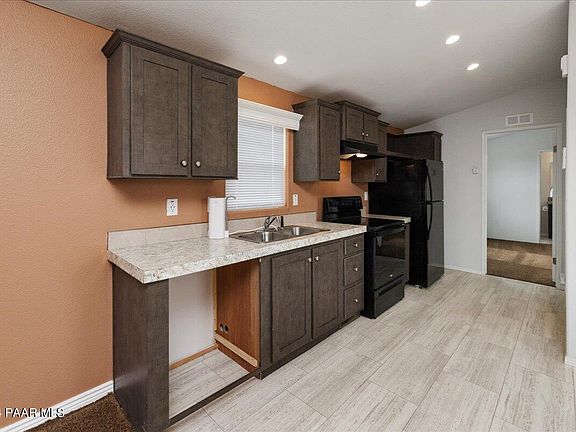 PRICE REDUCED!Newer 840sf Fleetwood single wide manufactured home on a partially fenced .22 acre level lot. 2 bed/2 bath, spacious great room and a good sized laundry room. Framed greenhouse/shed in the back yard.Gravel driveway and parking pad at the front of the home. Sale includes refrigerator and 2 portable air conditioners. Yavapai County manufactured home permit under doc tab.
