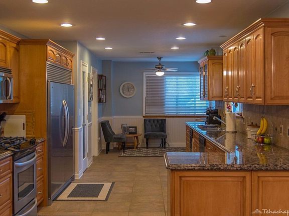 Beautiful remodeled home located in the lovely Country Oaks neighborhood. This single story home sits among giant oak trees while just minutes from Tehachapi City. Walk into an open floor plan with a formal living room, dining room, kitchen, wet bar and family room. The kitchen has gorgeous granite counter tops, cabinets, stainless steel appliances, tile flooring and a breakfast nook. The kitchen opens up to the dining area and new custom wet bar that includes a wine fridge. The alluring family room has a wood burning fireplace and striking views of the yard. Huge Master bedroom with an electric fireplace along with vaulted ceilings and a large slider door that brings in superb lighting & views. Master bathroom has dual sinks with granite counter tops, soaking tub, over sized shower, tile