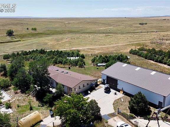 Presenting Ramah Springs Ranch. A secluded 160 acre ranch with live water and extensive improvements and outbuildings. 160 acres of rolling hills located at the headwaters of Reed Springs Creek, a tributary to Bijou Creek. The ranch has a large spring fed live water stocked pond. A mixture of Hay meadows and pasture makes this private and secluded ranch ideal for a ranch headquarters or stand alone livestock operation. The spacious 2313 square foot home is a completely improved and upgraded manufactured home and boasts 3 bedrooms and 2 full bathrooms. It boasts a fully updated and remodeled kitchen with new cabinets and countertops. And upgraded and remodeled bathrooms. The home is nestled among mature trees and a mature windbreak. The property has a good water well. Outbuildings are extensive. This well watered ranch boasts good habitat for Mule deer, Whitetail Deer, Pronghorn, Coyote, Fox and Mourning Dove. The pond which was previously stocked provides a great fishing opportunity. The ranch is perfect for Hunting, Fishing, shooting and Equine activities. Located just north of Ramah in Elbert County Colorado on the High Plains, the ranch receives 14-16 inches of annual moisture. The region is known for its good productive ranches and rural living. Ramah is a small quiet town along Highway 24 east of Colorado Springs. The ranch is located 47 miles from Denver Metro and 49 miles from Colorado Springs, Colorado, both boasting highly rated international airports, world class dining and entertainment and both at the base of the Rocky Mountains. For closer shopping options, both Falcon and Elizabeth Colorado are about 30 miles from the ranch.