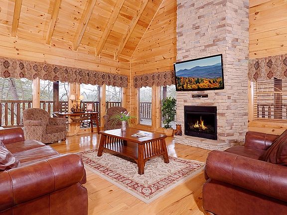 Fabulous 4 BR, 4.5 BA cabin in Bear Creek Crossing! “Down Time” is the perfect place to kick back and relax if you are looking for a well maintained turnkey investment property in the Smokies. The spacious floor plan features a large kitchen and dining area as well as a warm and welcoming living area with stone fireplace. A master suite is located on this main level plus you can walk out to the wrap around deck that overlooks seasonal mountain views. Downstairs is a well appointed game/family area, two more private bedroom suites and a lower level deck. The top level of this spacious cabin features a self-contained bedroom suite that has its own romantic fireplace and sitting area – the ideal location to curl up with a good book or to watch the latest blockbuster. “Down Time” is the ultimate family retreat and is located in a GATED rental resort that offers an outdoor AND indoor pool, mini golf, club house, wide paved roads and public utilities. Unbeatable location and is a MUST SEE property! This property grossed over $54,700 in 2015 and has grossed over $39K so far in 2016 as of October 3rd.