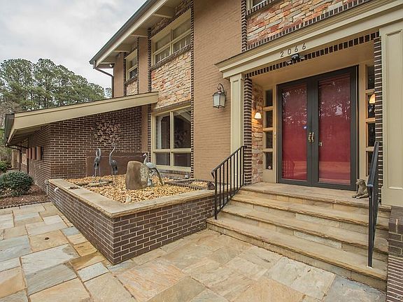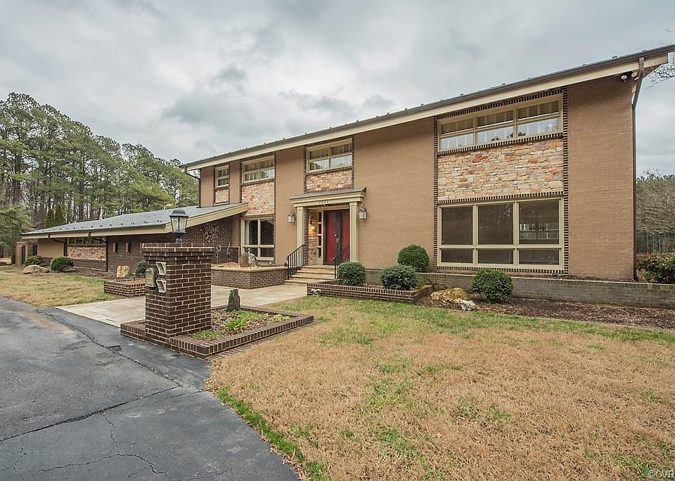 MID-CENTURY MODERN-This beautiful one-owner, custom-built home is truly unique, and situated on 8.82 acres with the lake/pond. Upon entering the double-door foyer you will notice the beautiful TN flagstone flooring, & floating stair case. The formal living room is to the right of the foyer, formal dining room accesses the updated kitchen. The kitchen has granite counters, stainless appl, two pantries & a prep island, all open to the family room w/brick fireplace & access to the sun room. There's attention to detail with beams from an old church & tongue & grove ceilings, along with stunning windows that allow for natural light & panoramic water views galore! Featuring a lovely sun room facing the water w/cathedral ceiling, wet bar, & wiring for sound/audio system, perfect for entertaining. Down the hall is the large laundry rm/full bathroom, rec room with dbl sliding doors that exit to the large TN flagstone patio area w/access to the water. Upstairs are four bedrooms w/vaulted beamed ceilings, hall bathroom, hall clst 6 x 11, & the primary bedroom w/en-suite , balcony & custom walk-in. This sizable house is situated in a private park-like setting & is ready for you to call home!