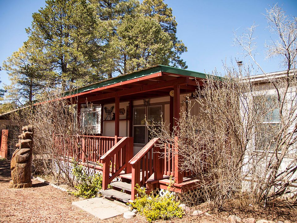 Looking for cozy cabin in the tall pines? This 3 bedroom, 2 bath, split floor plan home is conveniently located to local services. Third bedroom can be used as an office or guest bedroom. Landscaping, covered front and rear deck, completely fenced yard, rv hookup, metal garage w/ wench to store heavy items on upper level, NO HOA and Furnished. Hurry this property will not last. Call now for a showing.