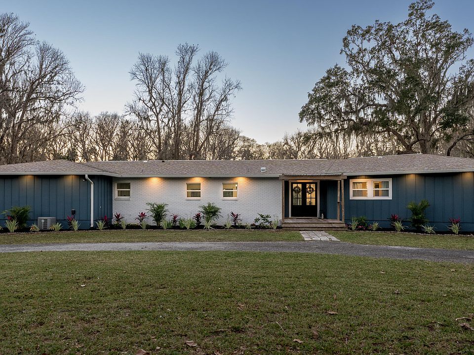 Welcome to your modern farmhouse dream home. 6.2 acres total, one of which is a stocked spring-fed pond, one acre is the driveway leading you past 30ft +\- hedges for optimal privacy through a gated entrance to roughly 4 remaining luscious green acres. This 4 bed 3 FULL bath with an oversized 2 car attached garage boasting over 2,900 sqft pool home underwent an extensive remodel the last two years. This home may be built in 1978 but nearly everything is 2021 and newer. The home was completely re-wired, with new panel and 200 amp electrical service to the home & RE-plumbed, new windows including two 10ft sliders and French doors, new framing, new drywall with level 5 finish, soffit and stair lighting to illuminate the evening hours, a gas fireplace which can heat the whole house with the press of a button, custom farmhouse style window, and door trim, a 500-gallon propane tank installed with gas appliances throughout including a new tankless water heater. In the master soak in the deep free-standing "in the shower" tub and rinse off under one of two rain-heads, making you feel like you're having a luxurious spa day. New exterior paint hugs the home, and a brand-new concrete patio overlooks the backyard. This home is built on an 18-inch stem wall foundation making it elevated and high and dry off the ground. The owner is currently receiving $234 a month in rental revenue by leasing one side of the 2-sided exterior 29'7" X 24'6" deep garage bay and one side of the 35X24 RV port. Lease agreements are month to month. The owner has also utilized the property in the past to host weddings and events. There is an additional 22X15 carport located on the SW side of the property. Watch as the deer graze, wild & kept ducks splashing in the pond and the turkey roll in almost every evening around sunset. Top-of-the-line kitchen-aid appliances still under warranty, with a 36in 5 burner gas cooktop, It's an entertainer's dream kitchen. Interior laundry with plenty of cabinet space and a brand-new LG washer and dryer are included in the sale. Available for separate purchase is also a Bad Boy zero-turn lawn mower and a 2015 Polaris ranger side-by-side. ALL furniture can also be negotiated. Brand new portable generator inlet to efficiently run your generator come hurricane season. The home experienced NO flooding during recent hurricanes, the property drained retaining water entirely less than a week post-storm. Spray foam insulation, and soundproofing throughout the entire home keeping electric bills LOW for the size. The location is perfect, located on Taylor Rd in NSB you have access to Glencoe to 95, Edgewater to 95, and old mission to 44. Multiple avenues to take regarding travel. ALL INFORMATION IS ASSUMED ACCURATE BUT NOT GUARANTEED. ALL MEASUREMENTS ARE APPROXIMATE. BUYERS AND THEIR AGENTS SHALL VERIFY ANY INFORMATION DEEMED IMPORTANT TO THEM.