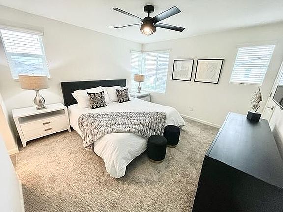 FULLY FURNISHED - HOA & Solar&pest paid for by owner Short term leases available **3 month minimum lease ** 1 year lease preferred Brand new modern Leo Wilson Home in the Elev8tions community at Heritage Grove in North Clovis. 3 bedroom, 2 1/2 bath. Over sized master bedroom with walk in closet and en-suite bathroom. Beautiful new community pool! Located in the Clovis school district. Garage parking! The third bedroom has a dresser inside but the queen furnishing have not been set up yet. If you would like it furnished as a bedroom I will be happy to do so! Dogs are welcome for a pet deposit - there is a small backyard with bark 3 month minimum lease 6 months - 1 year preferred