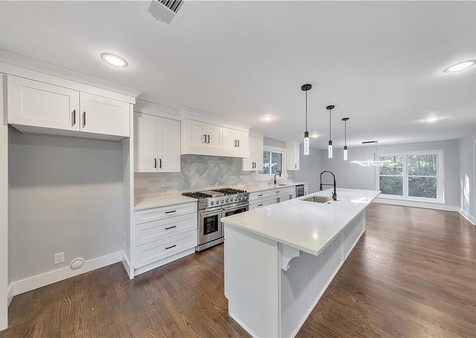 Here it is! The perfect home your family has been looking for! Nestled in a prime East Cobb location within the award-winning Walton High School district, this 5 bed / 3 bath property has been fully renovated inside and out. Recent upgrades include a new roof, gutters with guards, windows, HVAC, gas furnace, heat pump, water heater, electrical service/panel, new fixtures, and updated interior waterlines. Step inside to a main level that radiates warmth and elegance, featuring vaulted beamed ceilings, gleaming hardwood floors, and a fireside living room that seamlessly flows into the chef-inspired kitchen with a 48-inch stove, under-drawer microwave, expansive island, two sinks, wine fridge, and a walk-in pantry. Two main level bedrooms share a beautifully updated hall bath with a double vanity. The primary suite boasts tray ceilings, access to the backyard, and a primary bath offering separate vanities, a luxurious shower, and a spacious walk-in closet. The fully finished basement includes two additional bedrooms each with walk-in closets, an updated full bath, a media room, and multiple storage closets throughout. Flexible space near the entry can function as a mudroom area. The oversized 32-foot garage offers additional storage, new garage doors, and an EV charger - perfect for your Tesla or other electric vehicles. Outdoors, enjoy a fully fenced backyard with fresh zoysia grass and a brand-new patio, perfect for hosting barbeques! Located just a few homes from the neighborhood pool and tennis, and minutes to shopping, dining, I-75, Downtown Roswell, and the Roswell Riverwalk Boardwalk along the Chattahoochee. Don’t miss the opportunity to make this exceptional property your own!