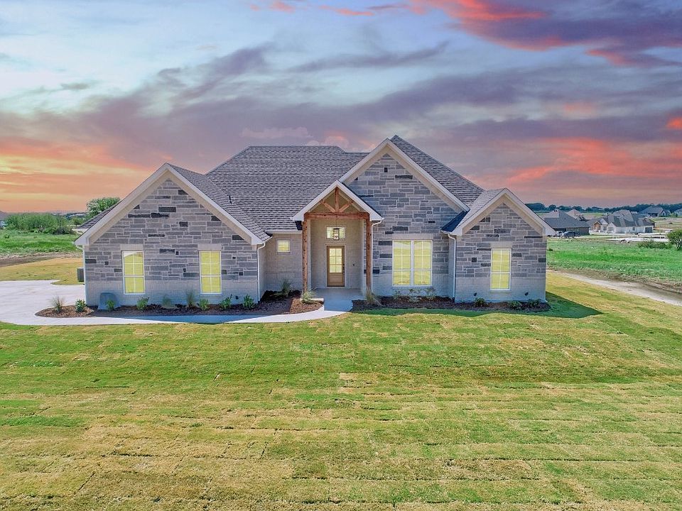 MK Custom Homes brings you this beautiful new construction in Elevation Estates. The property offers 3 bedrooms, 2 baths , a well laid out floor plan of 2324 SQFT on just over one acre. In a rural community that is convenient to Weatherford and Granbury. The open concept from living to kitchen creates a great place for gatherings. The kitchen is vibrant with white cabinets and a gleaming white backsplash. The split bedrooms give the adults some peace and quiet. The fully customized closet provides ample shelves and clothing racks to maximize organization. The opposite end of the home gives the children their own space with 2 bedrooms and full bath. In addition, a laundry, mud space, and oversized 2 car garage add to the ample storage. A spacious office with a window view creates a productive work environment from home.