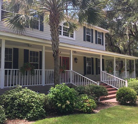 Classic Low Country Home Overlooking the 10th Fairway! Located across the street from water front homes at Sutherland Bluff Plantation, this home features a great floor plan with generous sized rooms for entertaining. Large foyer entry to family room with wood burning fireplace, kitchen with granite and stainless appliances, breakfast area to open rear deck, formal dining and den. Master on main level. This gated community offers Deepwater Dock, Clubhouse, Pool, Tennis and Work Out Facilities.