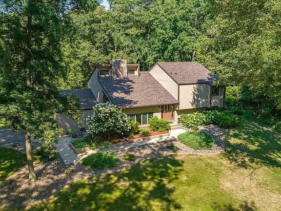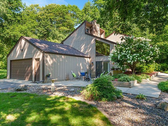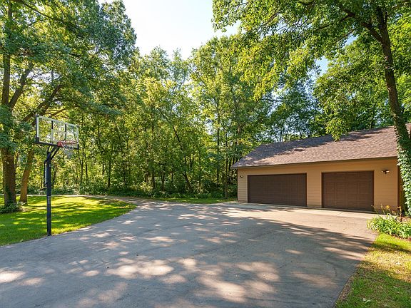 Stunning contemporary designed home w/ additional 36x30 detached garage (cement floor, heated/insulated) sits perfectly on a private country acreage setting. Custom architectural design allows for an open floorplan that takes in wildlife views and offers multiple outdoor living spaces to enjoy. 2-story stone fireplace greets you w/ a catwalk balcony on upper level. The vaulted lower-level walkout living room features a 2-sided fireplace and is filled w/ windows including a dramatic trapezoid. You'll love the upper-level spacious/remodeled kitchen that features many attractive maple cabinets in a rich tone, granite,stainless appl, hardwood floors & opens to the vaulted dining area w/ sliders to a deck. Numerous updates over the years: new carpet (2022), roof(2020), remodeled kitchen/baths, Andersen windows & more. Desirable hidden gem of a neighborhood w/ winding & paved streets - just minutes to town & located in Prior Lake School District.
