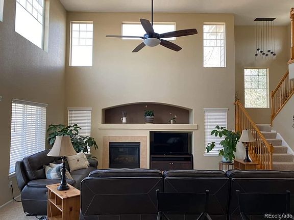 Dream Home in The Conservatory neighborhood with Open Space behind and to the side with Mountain Vews! Beautiful 2-story Living Room with soaring ceilings and clerestory windows allowing lots of natural light with Open Space Views. The open Kitchen with breakfast nook and breakfast bar features a sliding glass door to the back deck, 42 inch cabinets, a pantry, and stainless steel appliances. The dining room is currently serving as an office and it would work great for either option. A powder bath and Laundry complete the main level. A beautiful stairway leads to the second level and a landing overlooking the main level. The private master bedroom offers views to open space and features a 5-piece bathroom with double vanity, soaking tub, separate shower and walk-in closet. Two more bedrooms and a full bathroom complete this level. The full sized walk-out basement is awaiting your finishing touch. It has nice above ground windows and a sliding glass door to the backyard and patio. This home has a newer roof (2015), Newer 50 gallon hot water heater (2020), Newer exterior paint (2015), newer interior paint, plus canned and custom lighting throughout. The 2-car garage is oversized and offers side access to the backyard. The beautiful yard is landscaped with trees (including a plum tree) and flowering shrubs. There are sprinklers front and back. Note the south facing driveway and open space with access to neighborhood trails to the west of the house. The Conservatory is a fabulous area with miles of trails accessing the Plains Conservation Open Space. Community events abound, including Coffee socials, Ladies Bunco Night, and holiday gatherings. The neighborhood is in close proximity to area restaurants, shopping and entertainment, as well as easy access to highways for travel.