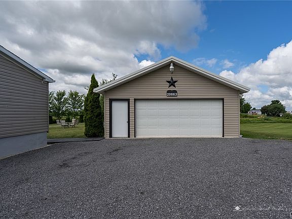 Immaculate and pristine 3-bedroom home tucked on a quiet street right outside of Watertown and in Sackets Harbor school district!! Come check out this diamond of a home that has been meticulously maintained and so much love and character! Fabulous layout with large spacious kitchen, fully applianced with custom built moving island, large dining area, spacious living room with built in TV area that stays, awesome master with double sinks and garden tub, 2 extra bedrooms and bath, everything in top shape with many recent renovations! Nice covered back porch and large front deck, large yard and oh don't forget about the huge 2 car garage with heated workshop in the back! Public water, natural gas and everything is like new! This is an awesome home and is ready for a new owner!