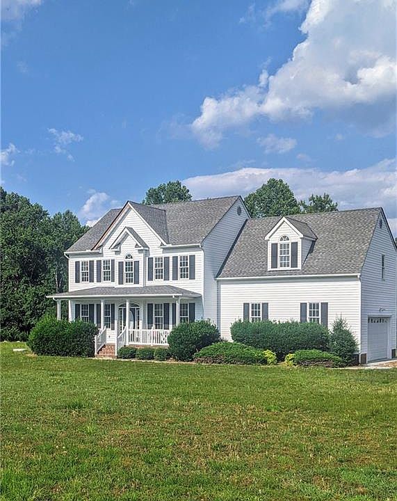 This beautifully done 2-story vinyl home has never been occupied and is move-in ready! This home features cathedral ceilings and gorgeous 4-inch wide hardwood floors. The first floor has formal living and dining rooms, an open kitchen with plenty of cabinets, a center island, granite counters, and access to the family room that features a gas fireplace and access to the rear deck. Located on the second floor you will find the large master bedroom with hardwood floors, walk-in closet, and master bath with free-standing shower, double vanity, and garden jacuzzi tub, along with the additional bedrooms, laundry room, and additional full bath. This amazing home also has 2-zoned central heat and air, ceiling fans, plenty of closet space, a security system, a country front porch, a rear deck, and a 2-car attached garage. The home sits on 5 acres in a great rural setting, but still withing minutes from conveniences. Take a look!