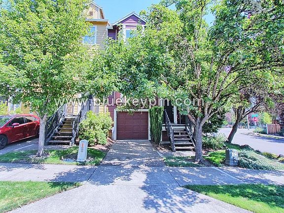3 bedrooms, 2.5 bathrooms townhome with a 1 car attached garage and lower level bonus room/office located near Max Line, Quatama Park and 5 minute proximity to Intel's Ronler Acres campus in Hillsboro. It features central air for summer comfort, beautiful easy care vinyl plank flooring, large windows throughout, a gas fireplace and built-in shelving in the living room, bayed windows and a deck. It has a spacious kitchen with gas stove and oven, custom cabinets with windowed upper doors, stainless appliances and tiled backsplash. The dining room is bright with a floor to ceiling window and indoor shutters. All of the bedrooms are spacious. The main guest bathroom has a tub/shower combo and large vanity with drawers for storage. There is a convenience washer and dryer for your use. The primary bedroom is expansive with bayed windows, walk-in closet and private bathroom with tub/shower combo and large vanity. This home has a bonus room/ office that walks out to the lower level covered patio. Tenants maintain yard care. 2 Pets Welcome...Dogs or Cats to 40 lbs max weight. $800 refundable pet fee for each pet. Call Blue Key Property Management, Inc. $2695 Rent, $2695 Security deposit, $55 non refundable screening fee per adult age 18 and older. $800 additional refundable deposit per pet if owners allow pets. Renter's insurance required. Blue Key Property Management, Inc. licensed in WA and OR. 20669 NW Painted Mountain Drive, Hillsboro, OR 97006