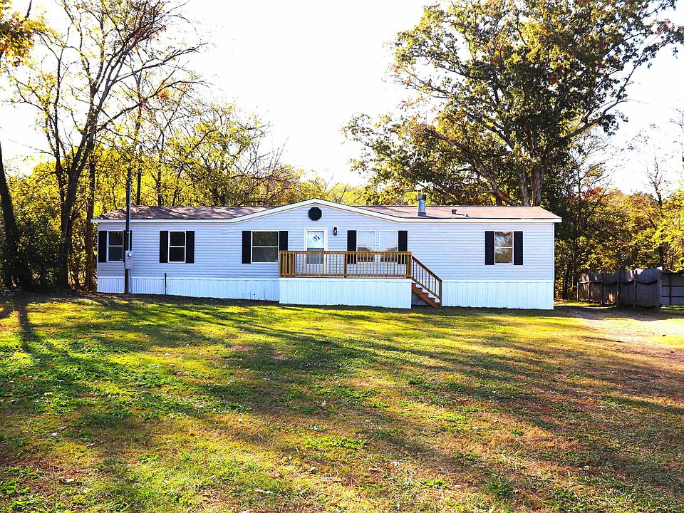 Gorgeous, completely remodeled, 1700 sq. ft., farmhouse style, 4 bedroom 2 bath manufactured home on a permanent foundation with 1.1 acres and 1200 sq ft garage/office. This home features shiplap walls, new roof, new HVAC, new front and back decks, new awning on glass doors, new flooring, new lighting, new paint throughout. Main bedroom with walk-in closet and glamour bath boasting a new free standing tub, shower and new double vanities with new fixtures. Accent walls in guest bedrooms and new vanity in guest bath. 1200 sq ft garage has seperate space for office, tall garage door for camper or RV and standard door for vehicles, and is oversized with ample space for workshop in addition to parking. This one is a must see, call for your showing appointment today.