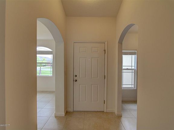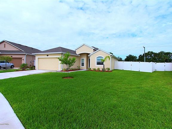 WHY WAIT TO BUILD WHEN YOU CAN MOVE INTO THIS PRACTICALLY BRAND NEW HOME! Built less than 1 year ago with upgrades galore. This perfect home is situated on a premium oversized lot with a fully fenced backyard. Well equipped kitchen with SS appliances, granite counters, upgraded cabinets, and eat in kitchen nook. This DR Horton Aspen model is move in ready with 18''tile throughout entire home and true split bedroom plan. Separate formal dining room at front of house could be converted to 4th bedroom or home office. Inside laundry room with washer & dryer included. Spacious master bedroom. Master bath has large step in shower, granite, double sinks and walk in closet. Trussed covered back porch overlooking back yard. Hurricane shutters included. Close to shopping, schools, dining, beaches, Orlando Attractions, Port Canaveral, fishing in Indian River, Kennedy Space Center and easy access onto I-95.