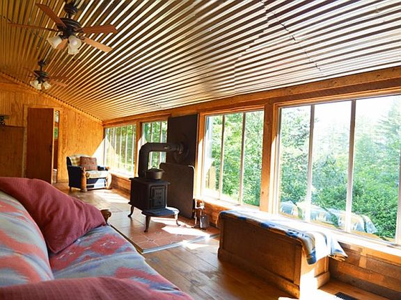 This vintage style home is extremely energy efficient from heat pump water heater, Newmac furnace, and LED lighting, updated electric and plumbing. Interior features corrugated tin ceilings, sun-room with wood stove, mudroom, kitchen with recent appliances and french doors leading to living room, on a full walk-out basement.6.3 peaceful acres with a sugar bush, shed, view of Burke Mountain, and is close to Karme Choling and Harvey's Lake is nearby. If you appreciate charm, this property is a must see! Full basement!What once began life as a mobile home has been magically transformed into a well built, charming, and rustic year round retreat.