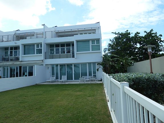 Spectacular oceanfront, corner townhouse with direct access to the beach in highly sought-after Ocean Park. Offered exclusively by Elena Muñoz 787 306-1918, elena1227@gmail.com. The spacious rooms, modern kitchen, two-car garage, terraces and balconies make this three-story condo an excellent home to enjoy the beautiful view and great beach. The first floor offers an entrance foyer, living, dining, kitchen, terrace and backyard, all with views of the ocean, plus powder room and utility closet. The second floor has a beach-facing master suite with a balcony and walk-in closet, en-suite bathroom with double sinks, separate shower, whirlpool tub and water closet; two more bedrooms, a full bathroom and laundry room. The third floor is comprised of a luxurious and private master suite with a glass-enclosed en-suite bathroom, a big and breezy terrace, all with gorgeous ocean views plus a balcony facing the front of the home. This floor can also serve as a generous family room/office/gym. Other features include: water cistern, security cameras, two-car garage with automatic door opener, elevator, stainless steel appliances, air conditioning and motorized storm shutters. Complex has its own 24-hour security personnel, handyman, generator, and is located within the gated-community of Ocean Park. Only six units in the complex. Located half a block from park with running track, soccer field, playground, and tennis courts. The complex is 10 minutes away from the airport and from excellent private schools. For more information or for showing call Elena Muñoz at 787 306-1918 elena1227@gmail.com