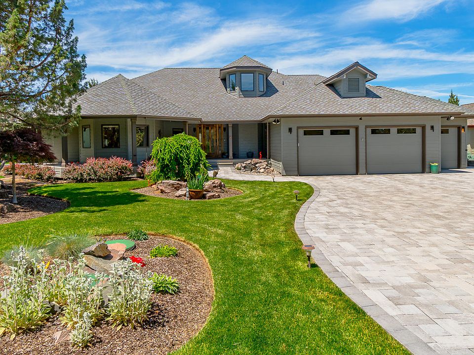Gorgeous home located in quiet cul-de-sac on the 14th fairway in gated community at Eagle Crest Resort! This completely remodeled home has an entry door and side lights custom made by Bear Creek Doors of Oregon Coast Myrtle Wood. Home features great room floor plan with hardwood floors, high ceilings, wall to wall windows, built-in wet bar with wine cooler and ice maker and stone surround fireplace. Gourmet kitchen with slab granite counters, Bluestar 6 burner gas range, custom cabinetry and spacious walk-in pantry. Formal dining room with buffet for entertaining. Master suite on the main level with fireplace, dual vanities, walk-in shower, soaking tub and walk-in closet. Two ensuite guest rooms, one on main level and one on upper level for privacy and convenience. Enjoy the fitness room and sauna. Expansive covered front and back decks to sit and take in the views. Eagle Crest offers three 18-hole golf courses, 3 sports centers, miles of walking/bike trails and Deschutes River Access.
