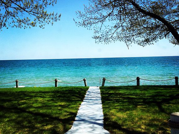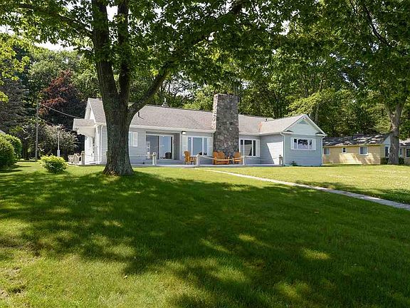 A wonderful location on Lake Huron with 90' of frontage, a nice deep lot and a back lot included! Huron Oaks Sub offers beautiful mature trees and a nice street off the main highway for walking the dog or bike riding! A breakwall at the waters edge with plenty of decking for your waterfront enjoyment! This spacious ranch home has been well cared for and offers a great combination of days gone by and modern conveniences! The open living space is lovely with knotty pine walls, hard wood floors and gorgeous stone fireplace with gas log insert! This room flows right into a large dining area where those ever changing water views are yours! Then the dining is open to the kitchen that features newer granite counter tops, subway backsplash and newer flooring! Kitchen appliances included too! There is a convenient half bath at this end of the home that has had recent updates too! The master bedroom is lakeside and offers plenty of closet space! There are two full baths just outside of the bedrooms! The storage and closet space in this home is abundant and truly shows how this home is more than a cottage and can easily be a year round home! The two remaining bedrooms also have the hardwood floors and good natural lighting! The utility room is oversized with newer ceramic tiled floors and includes the front loading washer & dryer! The folding space and cabinetry here is also a real plus! There is a nice large breezeway that has been recently re-done and can dual as an office or sitting room! The three car garage is partitioned inside so one stall makes a nice workshop! The well is newer too and offers an upgraded computerized module for regulating pressure through-out the home and temperature of the hot water! The attic space is great for storage too! The long paved driveway allows for plenty of company and the underground sprinkler will keep your lawn looking good! **Disclaimer-Gold Spock dining light not included.