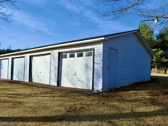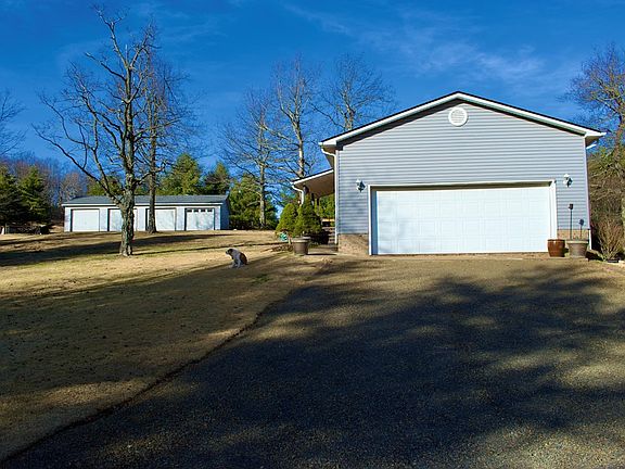 WOW! A 6.5 car garage/workshop w/ 3 bed, 1.5 bath home & 3.2 acres of unrestricted land. When entering through the back door you enter an open floor Kitchen/Dining area that has laminate hardwood flooring. Moving past the kitchen you are welcomed to a cozy living room that has a wood burning stove with tile flooring underneath & carpet. The hallway leading to the other rooms has 2 steps going up that gives the living room a warm charming feel and architectural detail. Located at the end of the hallway is the Primary Bedroom with a door going out to the back deck and also a private entrance to the full primary bathroom & walk in closet. The laundry area is located in the hallway and accessed by 2 full sized doors. An attached 2.5 car garage with loads of overhead space for additional storage. The attached garage also has a small room within it that houses the well pressure tank, water filter, and water heater. Located in the large back yard is an additional 4 car detached garage. Contd>