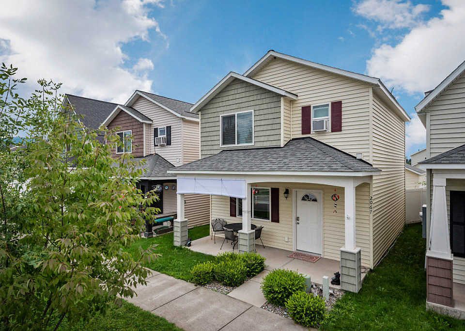 Sweet gem in Post Falls! This adorable 2 story home, with landscaped front walkway, welcomes you with a fully covered front porch. Inside is an open concept downstairs with living room, dining room, kitchen and half bath. Upstairs is the relaxing master suite, a guest room and laundry area with full size washer & dryer hook ups. The backyard is landscaped with lush grass, beautiful hydrangeas, a large covered patio and concrete path to the 2 car detached garage. Quick drive to Q'emiln Park and the river. Schedule your showing now so you don't miss out!