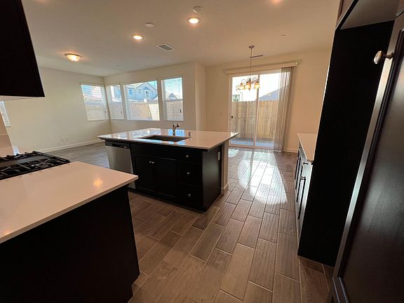 Beautiful contemporary home (corner lot) conveniently located in one of the finest neighborhoods in Clovis, amidst the highest rated Clovis Unified schools (Riverview Elementary, Granite Ridge, Clovis North High School - tenants to confirm). This beautiful home is in a gated community with a resort-style community pool. This highly functional 1390 sq.ft. plan has 3 bed / 2.5 bath with an attached 2-car garage. A modern kitchen with a large beautiful quartz island, ample cabinet space with modern premium brown scheme. White ice quartz on all remaining counters with stainless steel sink. Stainless steel appliances include gas cooking range, refrigerator, microwave, dishwasher, and tankless water heater. The upstairs features a beautiful master bedroom that is well lit with an extra-large closet and large bath. The two additional bedrooms are of substantial size with multiple windows, and an additional full bathroom. To add to all this convenience, the laundry room with washer & dryer is located on the 2nd floor as well. Two car garage has a side door and includes a plug outlet for electric vehicles. This beautiful home features a manicured front yard and backyard with little maintenance. Located close to schools, parks, shopping and freeways. 1-year lease. Income/employment (3 months of income proof), credit report, background verification required. Tenants will be responsible for all utilities (electricity, gas, sewage, water) and backyard maintenance (Note: low maintenance backyard & front yard maintained by HOA). Owner pays for the HOA payments (includes garbage services). Tenants pay first month rent and security deposit at the time of signing the lease. Tenants have to show proof of renter's insurance prior to moving in. Community pool managed by HOA. Addendum: CC&R's and house rules. No smoking.