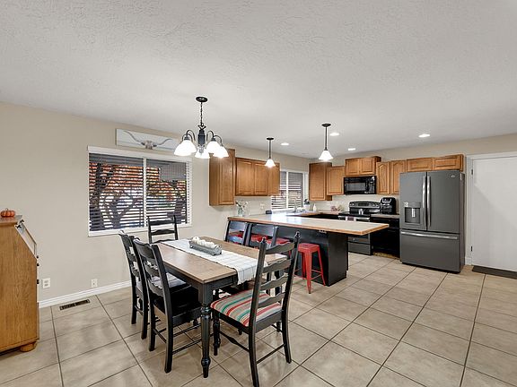 This one-of-a-kind home offers comfort, versatility, and an unbeatable location-right next to Roy High School and within walking distance to parks and all local schools. Inside, you'll find two master suites-one on the main floor and another upstairs with a walk-in closet and private balcony. The walkout basement includes a kitchenette and is zoned for an ADU, providing great options for guests, extended family, or rental income. Set on a quarter-acre lot with mature trees, the yard is ideal for entertaining with a gas line for a fire pit or BBQ, a large covered deck, and a brick patio next to a reflection pond that includes a pump-perfect for use as a kiddy pool on warm summer days. The oversized detached two-car garage is a dream setup-30 feet deep, heated, with water, a floor drain, 220V power, and a one-ton overhead crane. There are two driveways, plus RV hookups with power and sewer dump for added convenience. Major updates include two new furnaces, two new A/C units, a new water heater, and a newer roof and siding (2017). Homes with this combination of updates, flexibility, and location don't come around often-schedule your showing today!