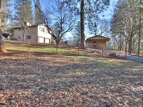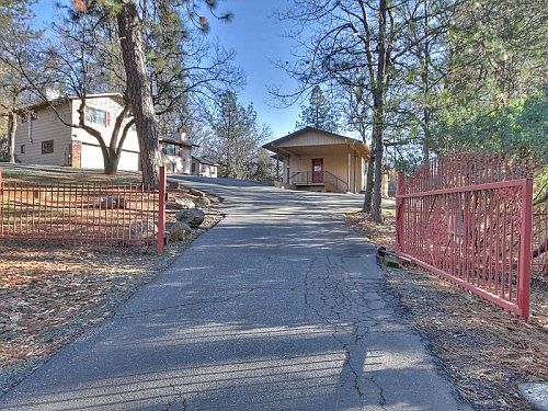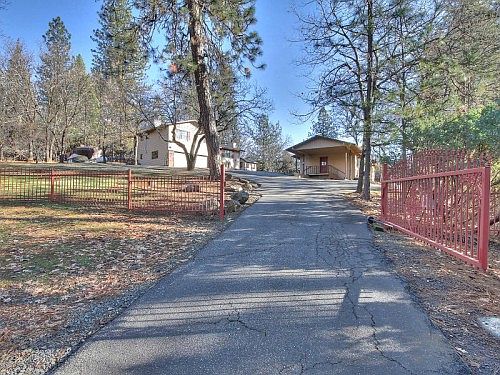 Surrounded by Ponderosa Pines and situated on fully usable 1.1 private, fenced and automatic gated acres, sits this 2 home property totaling 3,134 square feet. Main home is 3-4 bedrooms, 4 baths, 2,284 square feet with newly refinished knotty pine floors, new HVAC unit, new roof, granite counters, maple cabinets and oversized 2 car garage. Detached legal, FURNISHED (or empty at buyers choice) 850 square foot guesthouse with 2 bedrooms, 1 bath and currently a successful Vacation Rental. FULL RV HOOKUPS, greenhouse, 3000 gallon water storage and more. VIEW AERIAL VIDEO AT: http://bit.ly/1JpinbQ