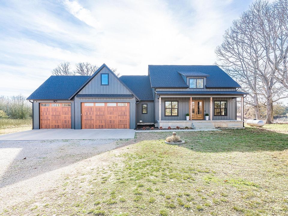 GORGEOUS MODERN FARM HOUSE BUILT IN 2018 ON 20 ACRES!!! Enjoy the peace and tranquility of country living while located just 4 miles from Cassville! This home has 4 Bedrooms, 3.5 Baths, and a 3 car attached garage with 9' stained wood look doors. This home features a beautiful DOUBLE DOOR entrance, SOARING ceilings with wood beam vaulted ceiling in living room and floor to ceiling stone fireplace! STUNNING granite countertops throughout the home, a farm house sink in the kitchen and a large pantry! This home also includes a large mudroom with sink, an extra room above the garage which could be used as an office, a huge open family room downstairs with a bar area plummed for a sink and refrigerator. This home offers a tankless water heater, an extra large 2 car garage door JOHN DEERE ROOM, and wonderful outdoor entertaining on a covered back deck and a covered back patio! Roaring River State Park is just 5 miles away, it is 30 minutes to Shell Knob and Table Rock Lake as well as just 30 minutes to Rogers, Arkansas! Come and visit this FABULOUS HOME!!