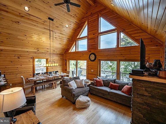 Stunning Lakefront Log Home at Deep Creek Lake! Welcome to your dream retreat on Deep Creek Lake! This finely appointed 5-bedroom, 4.5-bathroom lakefront log vacation home was built in 2015 and offers the perfect blend of rustic charm and modern luxury. Boasting incredible lake views, a private Type A boat dock, and gently sloping lakefront, this property has everything you need for four-season enjoyment. Step inside to a spacious mud room entry—perfect for ski storage after a day on the slopes. The heart of the home features a gourmet kitchen with upgraded countertops, flowing seamlessly into a sun-filled open living room with vaulted ceilings, a stone fireplace, and expansive lake views. A primary suite with a tiled shower and double vanity offers comfort and privacy, while a composite lakeside deck provides the ideal setting for entertaining or relaxing with the water as your backdrop. Upstairs, you’ll find two additional primary suites, each with private baths, plus a loft overlooking the living room with breathtaking views of the lake and surrounding mountains. The walk-out lower level is designed for fun and relaxation, featuring a family room with lake views, a second stone fireplace, a pool table, and a wet bar with extra refrigerator and microwave. High ceilings enhance the open feel, while two more bedrooms and another full bath provide plenty of space for guests. Step outside to a covered porch with hot tub, perfectly positioned to enjoy year-round lake views. The gently sloping lakefront leads to an open, grassy area with just a few mature trees and a bordered fire pit for lakeside evenings under the stars. The property includes a private boat dock with deep water in a central location on the lake—ideal for boating, swimming, and fishing. Extra Features - Strong rental history with year-round appeal and location just a few minutes to Wisp ski resort, Mountain-inspired décor with rustic charm, Four-season destination for skiing, boating, hiking, and more. This home is a true gem at Deep Creek Lake—whether you’re looking for a luxurious personal getaway or a proven rental investment!