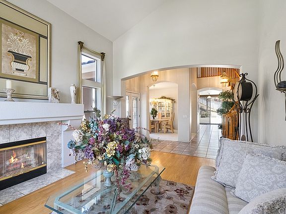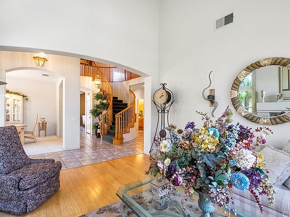 Beautiful Contemporary 4 bedroom, 3 bath 3135 sq. feet. two story home in the Orangecrest Community in Riverside. Upon your entrance through the double door entryway you're immediately left breathless at the sight of the accented spiral staircase, formal dining room and formal living room with a fireplace and vaulted ceiling. Kitchen includes newly upgraded microwave and dishwasher. First floor features new paint, tiles and decorative glass windows. Second floor upgrades include newly painted master bedroom along with new blinds in the master bedroom and restroom as well as upgraded hardwood floors. Balcony off of the master bedroom overlooking the Sheer Descent Cascade Waterfall Pool. Backyard features new rod iron fence and lighted and heated Sheer Descent Cascade Waterfall Pool for entertaining. Home has a 3 car attached garage and a large fully fenced in backyard with a patio. This home, which is located in a cul-de-sac is within walking distance to the top schools, dining shopping, Parks, Community Centers and entertainment, which is so convenient for today's homeowner.