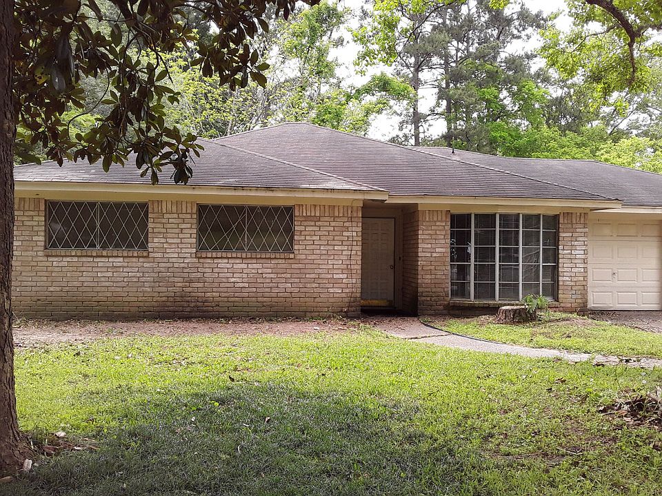 Country Living! Huge yard and no HOA fees! Nice home in quiet neighborhood, 3/2/2 w/lg enclosed back porch w/sep window unit. Nice size LR w/cnr FP & brick planter in entry, Seperate fenced area in back for dog run. Master bedroom w/ceiling fan & master bath, hall bathroom w/stand-up shower. We are in the process of painting the interior and adding new carpet. Call for details. Close to the new Grand Parkway. Schools and shopping in Valley Ranch.
