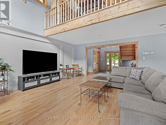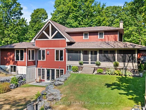 Welcome to 2068 Camp Line Road a custom-built 1.5-storey home nestled on 3.73 private acres surrounded by mature trees and beautiful landscaping. This spacious home offers exceptional flexibility for families, multigenerational households, or those seeking privacy with room to grow. The open-concept main floor features hardwood flooring, a cathedral ceiling in the living room, and a cozy propane fireplace. The kitchen is perfect for entertaining and opens into a dining area, living space, and a screened-in porch that overlooks the backyard ideal for relaxing with morning coffee or hosting guests. The primary suite includes a walk-through closet and a 4-piece ensuite bath. Upstairs, you'll find two bedrooms, a full 4-piece bath, and a versatile loft/study that can be used as an office or hobby space. The fully finished walk-out basement includes a second kitchen, a family room with patio access, 3-piece bath, a bedroom, office, and a multipurpose room, plus plenty of storage. There's also a walk-up entrance to the attached double garage, which includes a large storage room below. Outdoors, enjoy an above-ground pool, manicured lawn, mature trees, and a separate shed for tools and lawn equipment. This is your chance to live the country lifestyle with comfort and space just a short drive to town. (id:41440)