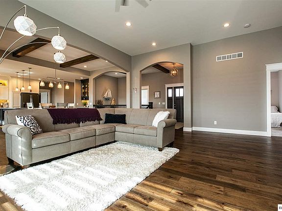 Quality built walkout ranch in Timber hyrst subdivision. This home is ready to go, you just need to move in! It has 5 bedrooms, 3 baths, 3 garages up and 1 down. Large open concept with a gourmet kitchen, living room with fireplace that leads out to a covered deck. Split floor plan with hardwoods in main floor living and master. 2 more bedrooms up and 2 down. Laundry on the main floor. Lower level features a large family room with a new added bar, 2 more bedrooms and bath and a garage for all of your outdoor items. Added large fire pit area with electricity and garden area. Yard is all done with landscaping/trees. Come see it!