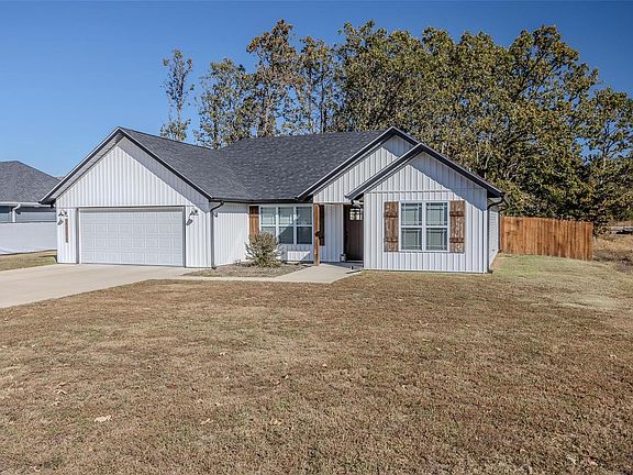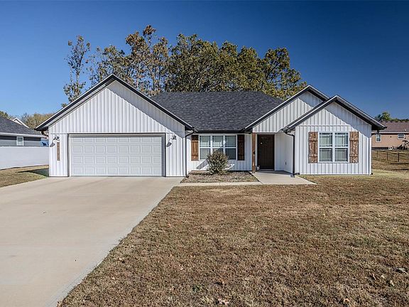 Discover modern elegance in this beautifully crafted home, built in 2022, featuring 3 bedrooms, 2 bathrooms, and 1,486 square feet of refined living space. The heart of the home is its gourmet kitchen, equipped with sleek stainless-steel appliances, granite countertops, and a central island perfect for both cooking & casual gatherings. The thoughtfully designed split floor plan offers a private primary bedroom suite with coffered ceiling, master bath w/double sinks, shower and walk-in closet. The open-concept layout is bathed in natural light, creating a warm & inviting atmosphere ideal for everyday living & entertaining. Special features include waterproof plank flooring, vaulted ceiling in living room, stainless-steel appliance including refrigerator, granite countertops, 8x12 pitch roof, stain wood privacy fence, concrete rear patio, board & batten siding. Located in a nice neighborhood on the edge of Lebanon, within minutes of shopping & restaurants, and quick access to I-44.