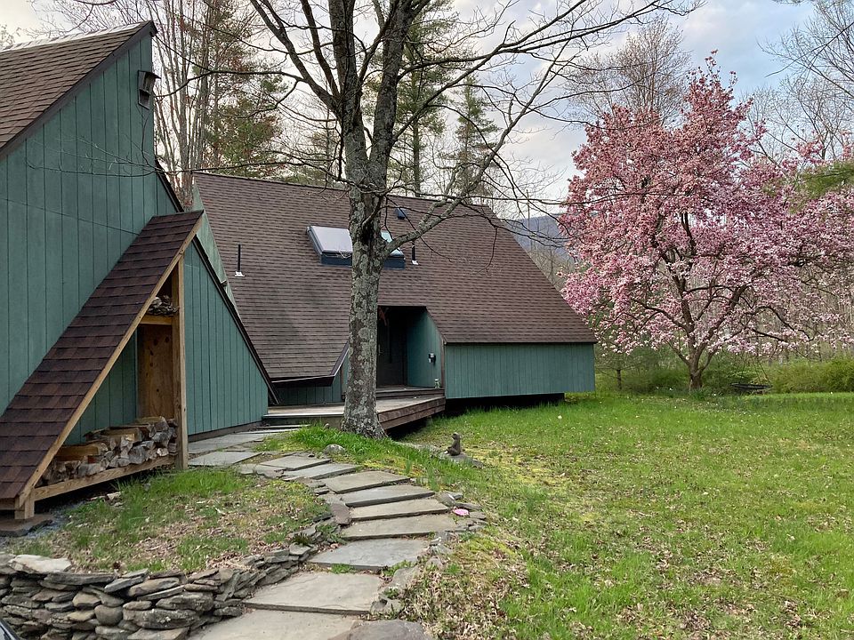 3 BR architecturally designed house in a private wooded setting while also close to town (1.5 miles to the Village Green), music venues, and hiking. Vaulted cathedral ceilings in living/dining area with sliding glass doors leading to private back deck overlooking the stream and forest. 1.5 bathrooms. Galley kitchen with attached pantry that has plenty of storage. Spiral stairs connects floors. 4 acres of wooded land with front and back yard. Perennial flowers and flowering trees on property. Stream runs through backyard. Front and back deck with great views of wildlife. 50' waterfall in the back forest. Appliances: dishwasher, washer/dryer, range, refrigerator, water filtration system, AC wall unit. Baseboard electric heat. Well water. Septic tank. Available 11/1 with lease length of 9 months to 1 year. Renter pays utilities and other services (electric, trash, wifi/cable). Security deposit and first month's rent due at signing. No smoking allowed. Electric heat. Woodstove may be used if renter pays up front to clean/inspect it at end of lease. Renters insurance is required.