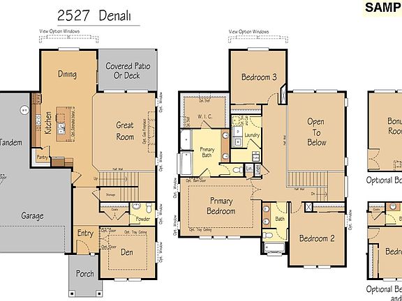 - Room types: Den, Laundry, Bedroom 2, Bedroom 3, Dining Room, Family Room, Kitchen, Living Room, Primary Bedroom