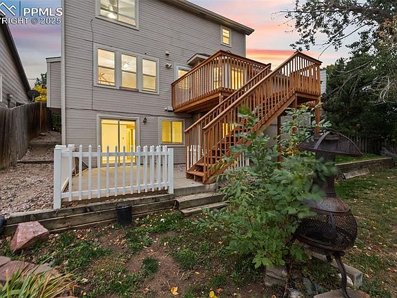 Welcome to this charming home in Sable Chase, offering spacious bedrooms, multiple living areas, and a functional layout perfect for modern living. Upon entry, you’ll find a bright front sitting room or office featuring a built-in bookcase and matching desk, as well as a formal dining room with hardwood floors. The large eat-in kitchen provides abundant counter and cabinet space, all stainless-steel appliances, and a dining nook with walkout access to the back deck. The kitchen flows seamlessly into the cozy family room, complete with a brick gas fireplace. Upstairs, the primary suite includes an attached 5-piece bath and walk-in closet, accompanied by two additional bedrooms and a full bath. The laundry room is conveniently located on the upper level as well. The finished walk-out basement expands your living and entertaining space with a second recreation room, a spacious fourth bedroom, an office/flex area, and a shower bath. Located close to trails, Academy D-20 schools, shopping, and dining, with easy access to I-25 and Briargate amenities, this home offers both comfort and convenience in a highly desirable neighborhood.
