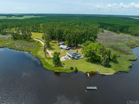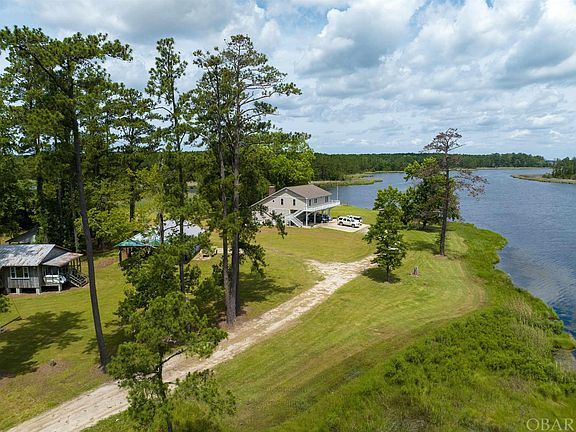 A riverfront estate in the heart of "God's Country" with over 2,000 feet of waterfront. World class fishing on the Pungo River, and hunting amongst the 44 acres, are beckoning at your doorsteps. Owner/contractor built, this home and property was spared no detail; expansive storage, custom built ins, secret doorways, whole house vacuum system and the multilevel convenience of an elevator and laundry chute. A custom stone fireplace accompanies the large open concept living area which flows naturally to river views from the side sitting porch. One bedroom and full bathroom adjoin the downstairs living space and utility room. Upstairs offers views of the water from the master suite, additional bedroom, and den. The property provides a large workshop with concrete floor, storage shed, and 2 bedroom/1 bath cabin with kitchen that could serve as a hunting cabin or guesthouse. Perfect opportunity to find peace and quiet alongside the river and mature pines with a one of kind estate.